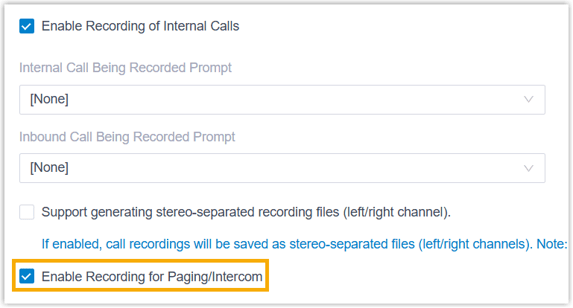 - Aktivieren Sie das Kontrollkästchen „ Aufzeichnung für Paging/Intercom aktivieren“ .