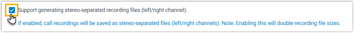 - Aktivieren Sie das Kontrollkästchen „ Unterstützung für die Generierung von stereoseparierten Aufnahmedateien (linker/rechter Kanal)“ .