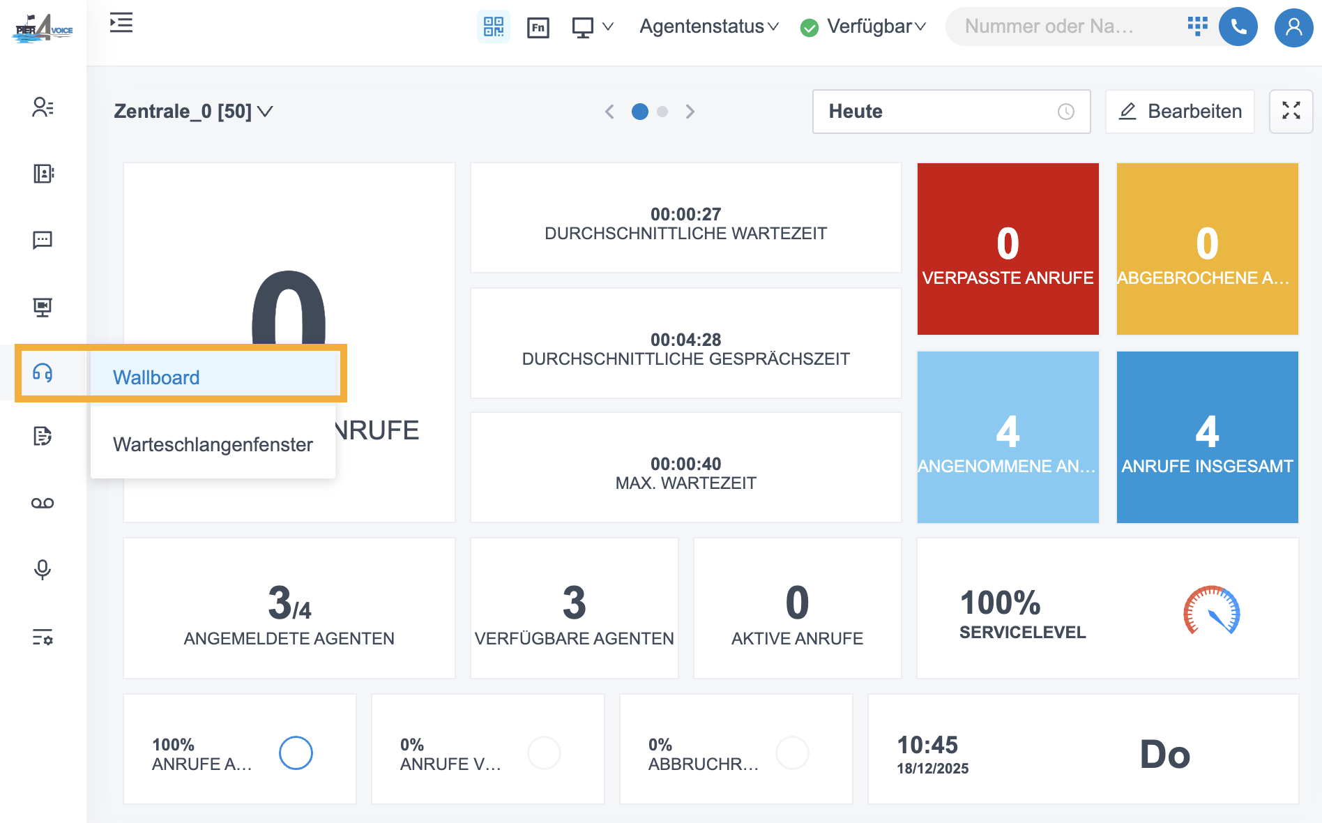 Sie können über den Pier4Voice Web Client oder Desktop Client auf das Wallboard zugreifen.