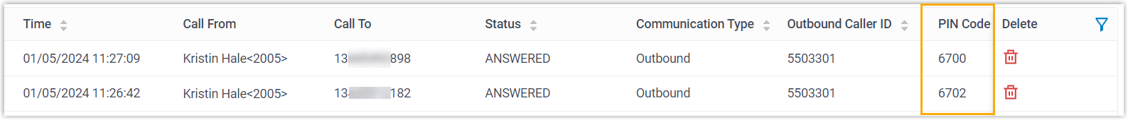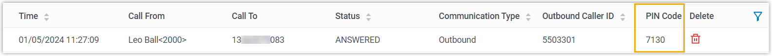- Im CDR können Sie die Benutzer, die ausgehende Anrufe über verschiedene, verschiedenen Benutzern zugeordnete PIN-Codes getätigt haben, leicht unterscheiden, selbst wenn sie für ausgehende Anrufe dieselbe Nebenstelle verwenden (Pfad: Berichte und Aufzeichnungen > CDR ).