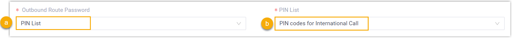 - Wählen Sie in der Dropdown-Liste „Passwort für ausgehende Routen“ die Option „PIN-Liste“ aus .