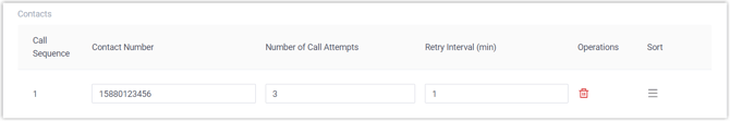 Klicken Sie im Abschnitt Contacts (Kontakte) auf Add (Hinzufügen), um die anzurufende Nummer zu konfigurieren und die Regel einzurichten. * Contact Number (Kontaktnummer): Geben Sie eine externe Nummer ein.