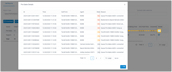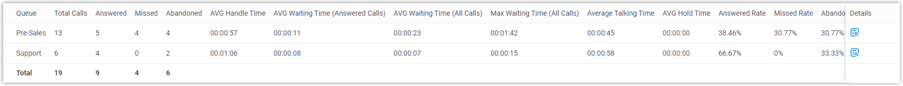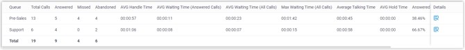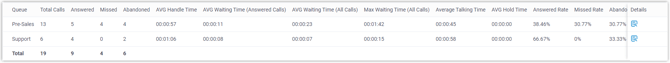 Die wichtigsten Kennzahlen für den Warteschleifen-Leistungsbericht sind unten aufgeführt.