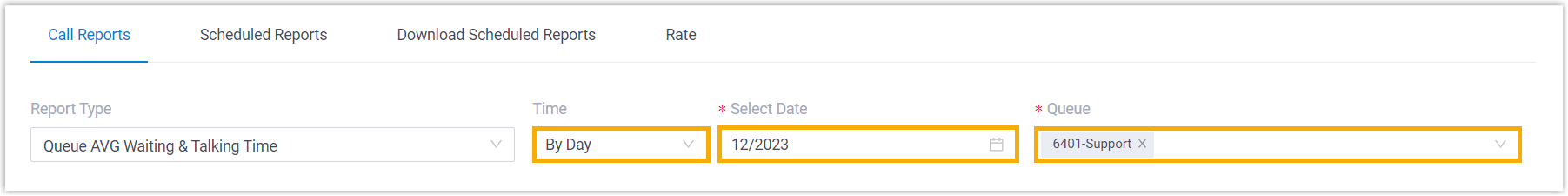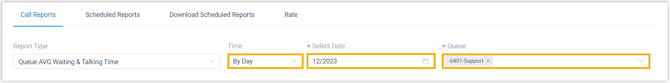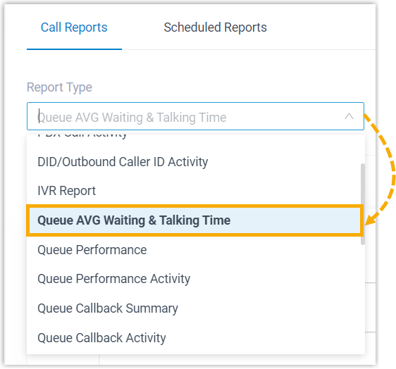 Wählen Sie in der Dropdown-Liste Berichtstyp die Option Durchschnittliche Warte- und Gesprächszeit der Warteschleife.