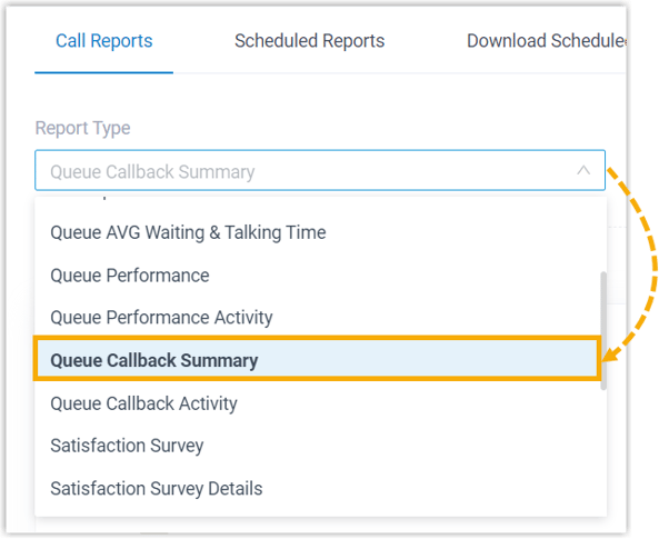 Wählen Sie in der Dropdown-Liste Berichtstyp die Option Warteschleifen-Rückruf Zusammenfassung aus.