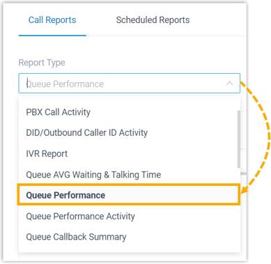 Wählen Sie in der Dropdown-Liste Berichtstyp die Option Warteschleifen-Leistung