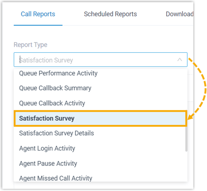Wählen Sie in der Dropdown-Liste Berichtstyp die Option Zufriedenheitsumfrage aus.