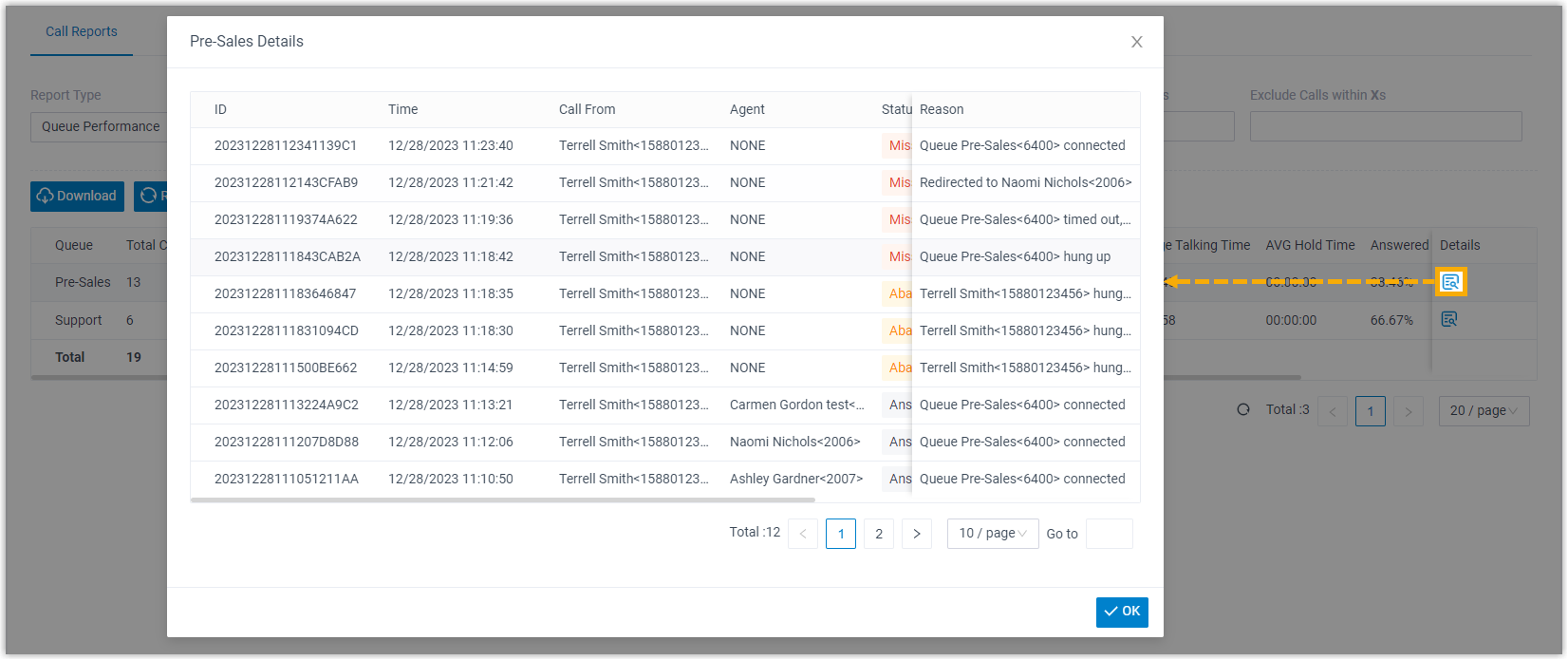 Melden Sie sich im PBX-Webportal an, gehen Sie zu Berichte und Aufzeichnungen > Anrufberichte.