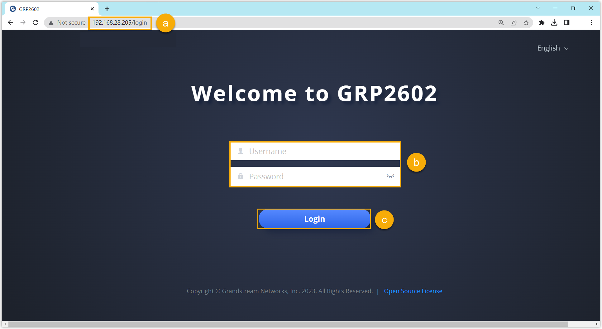 - Melden Sie sich an der Weboberfläche des Grandstream IP-Telefons an.
