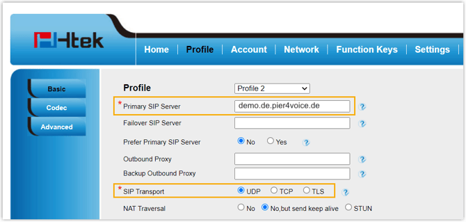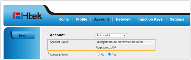 Manuelle Registrierung eines Htek IP-Telefons mit der Pier4Voice