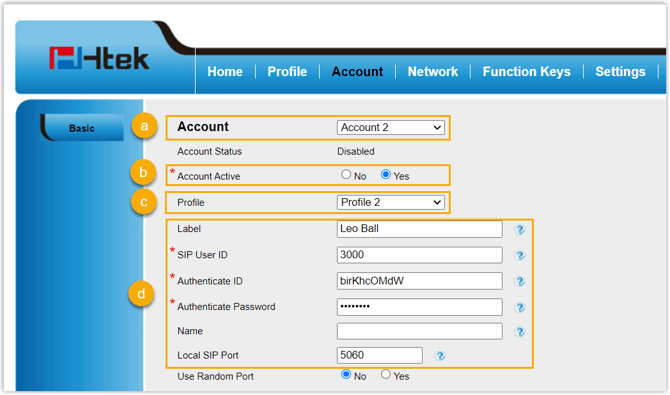 Schritt 2. Nebenstelle auf dem Htek IP-Telefon registrieren