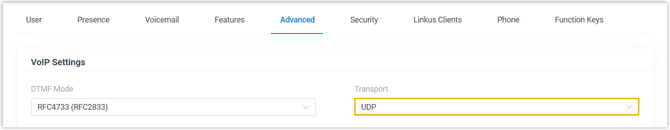 | Transportprotokoll | Gehen Sie zu Nebenstelle und Trunk > Nebenstelle > Erweitert > VoIP-Einstellungen > Transport und notieren Sie sich das Transportprotokoll der Nebenstelle.