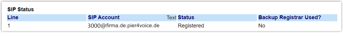 Die Nebenstelle wurde erfolgreich registriert. Sie können den Registrierungsstatus unter Status > Systeminformationen > SIP-Status in der Weboberfläche des Telefons überprüfen.