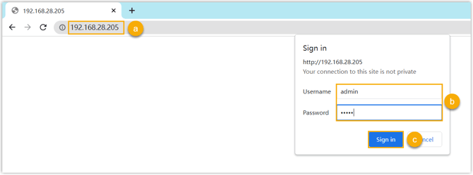 - Geben Sie den Benutzernamen adminund das zugehörige Passwort ein.