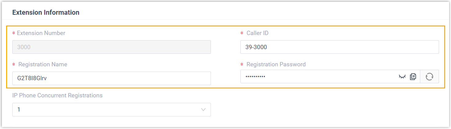 Melden Sie sich im PBX-Webportal an und sammeln Sie die folgenden Informationen für die Nebenstellenregistrierung.