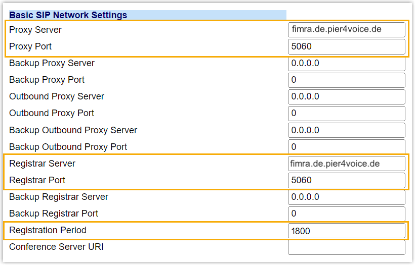 - Proxy-Port : Geben Sie den SIP-Registrierungsport der PBX ein.
