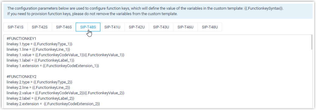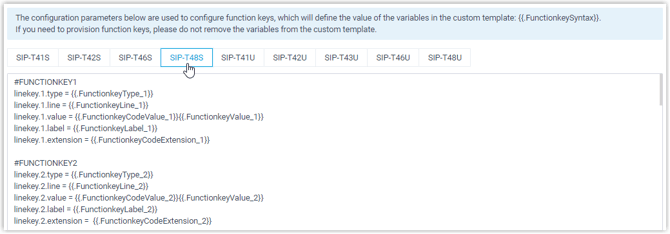 endet, ist der Konfiguration zugeordnet, die in den Abschnitten Preference, Codecs und Function Keys konfiguriert werden kann. Bitte ändern Sie die Variable nicht, wenn Sie die Einstellungen über das PBX-Webportal ändern möchten. -