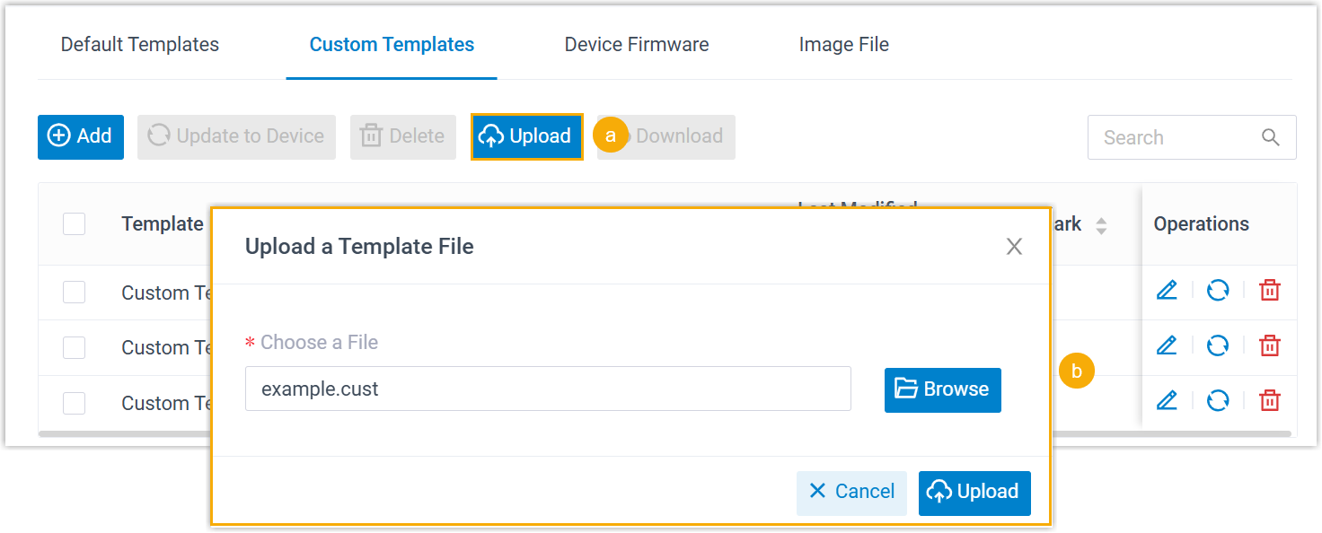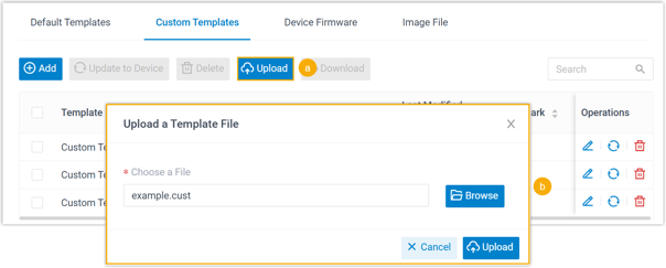 .cust-Vorlagendatei auszuwählen, und klicken Sie dann auf Upload (Hochladen). -
