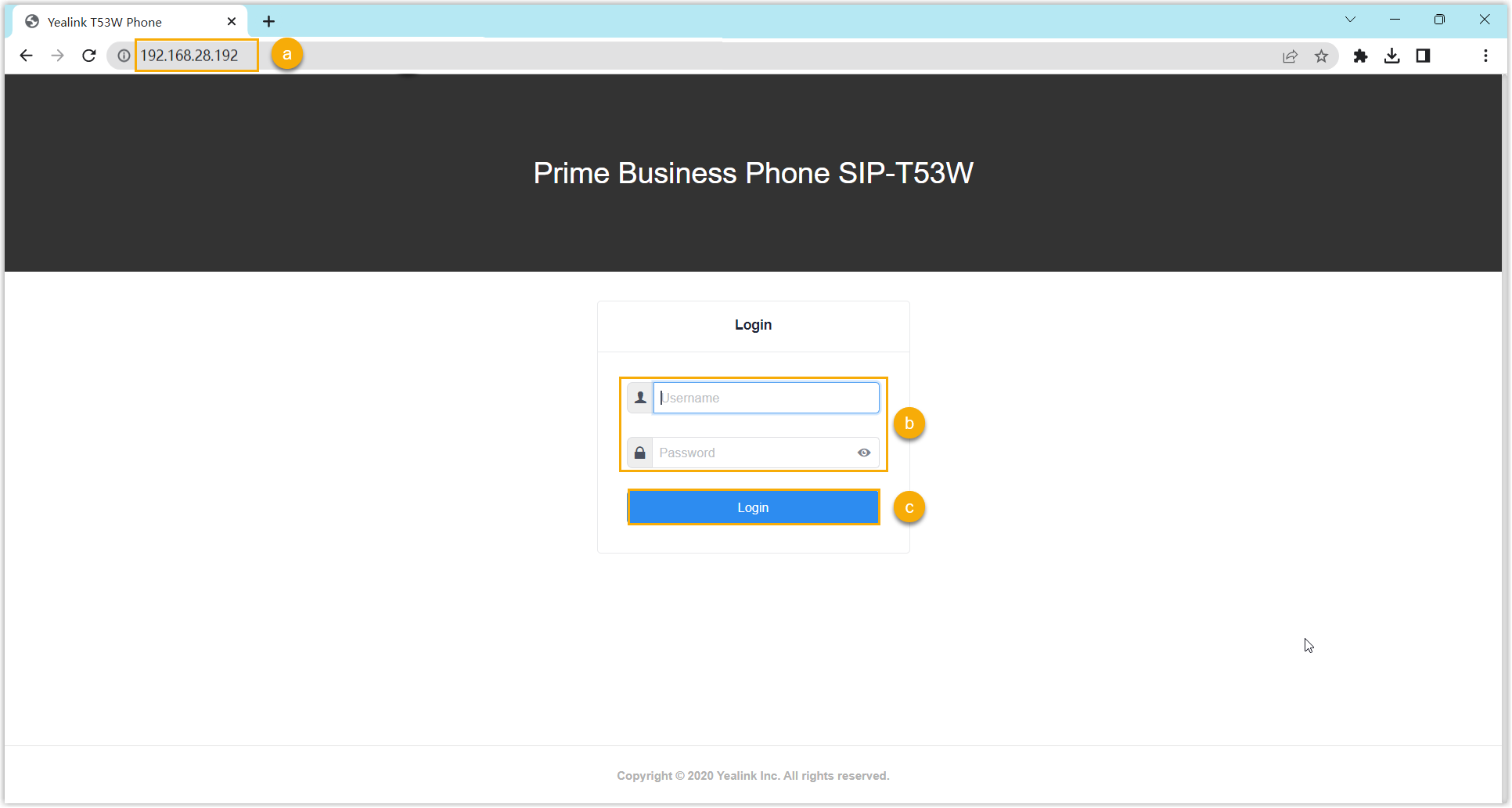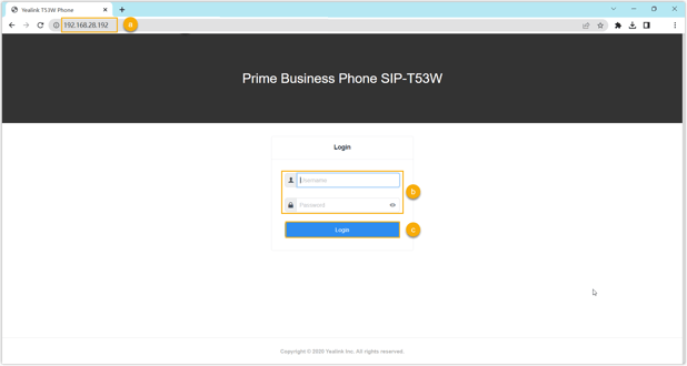 Melden Sie sich bei der Weboberfläche des Yealink IP-Telefons an.