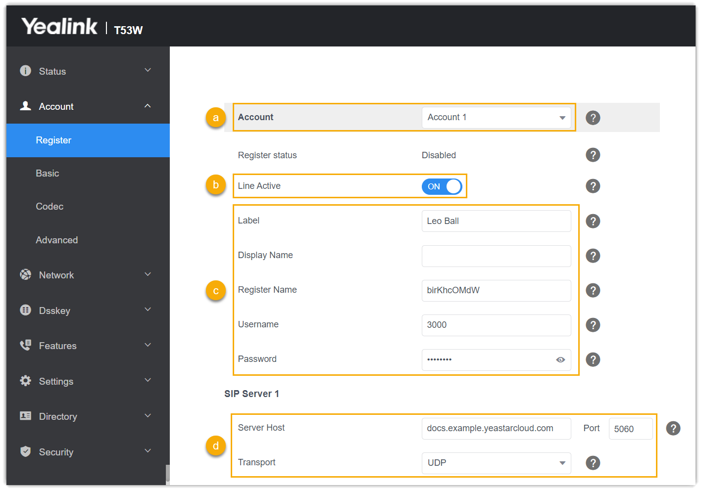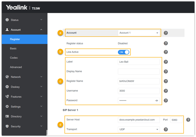 Dieses Thema verwendet das Yealink SIP-T53W (Firmware: 96.85.0.5) als Beispiel, um zu zeigen, wie eine Nebenstelle manuell auf einem Yealink IP-Telefon registriert wird.