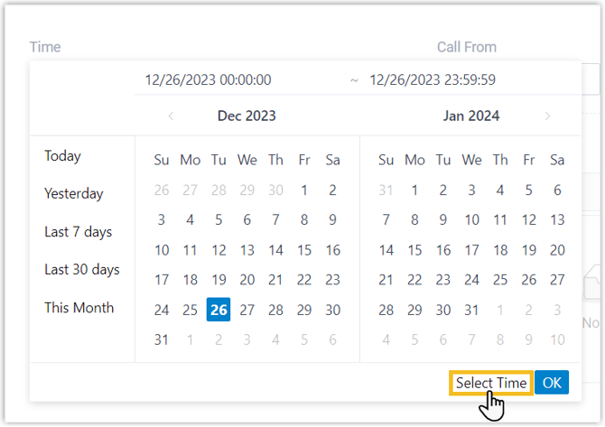 Filter Beschreibung Zeit Legen Sie das Start- und das Enddatum fest. Anruf von Geben Sie die Rufnummer oder den Namen des Anrufers ein oder klicken Sie,