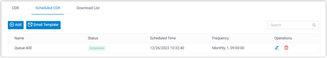 - Klicken Sie unter dem Reiter „Geplante CDRs“ auf „E-Mail-Vorlage“ .