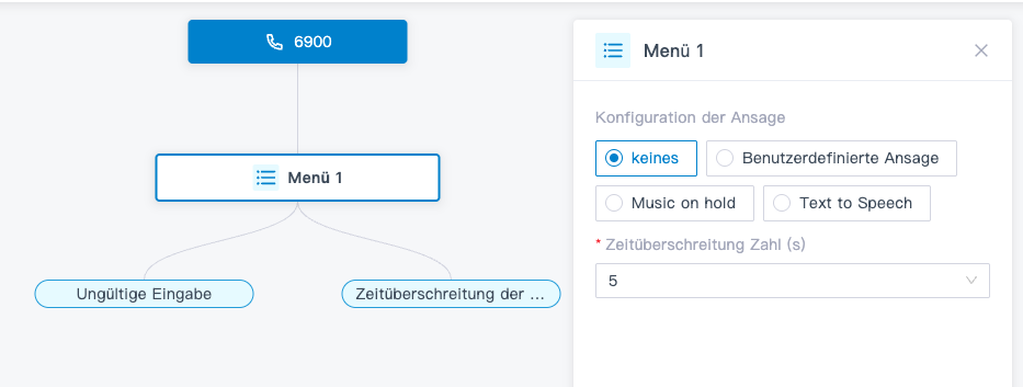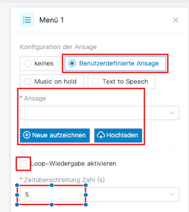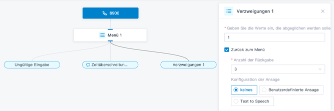 - Optional: Konfiguriere Audio-Ansagen oder eine Text-zu-Sprache-Nachricht, um Anrufer zum erneuten Versuch aufzufordern.