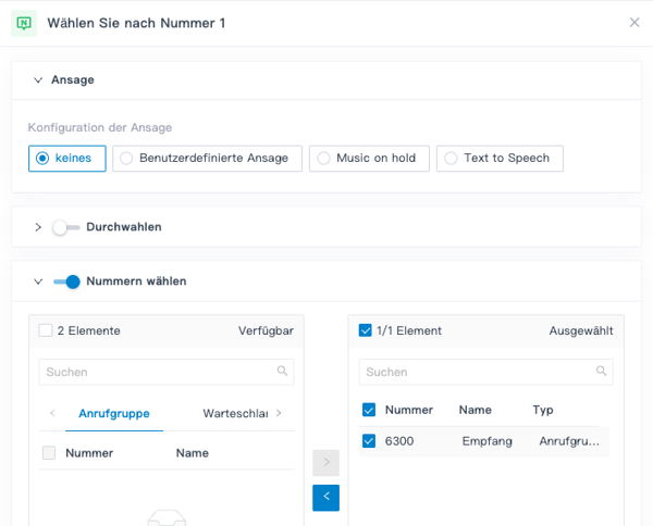 Call-Flow Anrufsteuerung Wähle nach Nummer