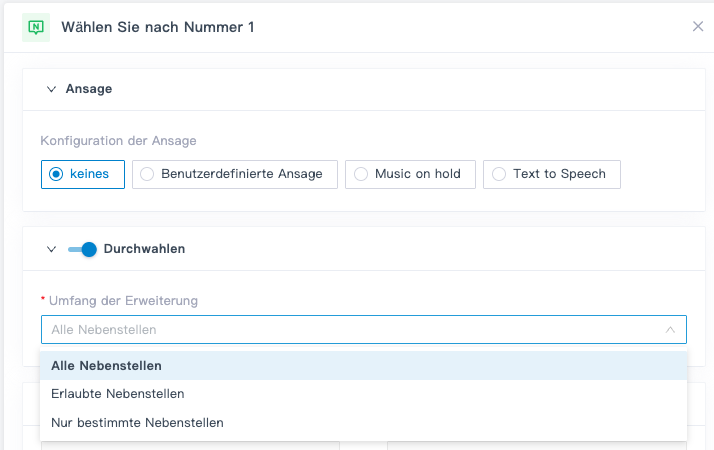 Lege fest was die Anrufer erreichen können wenn Sie die Option Durchwahl wählen