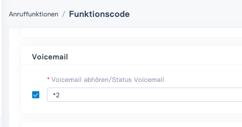 Hinweis: Um den Funktionscode oder die Zugangs-PIN zu ändern, gehe wie folgt vor: Voicemail-Funktionscode: Der Standardfunktionscode ist *2.