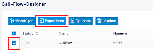 Hier möchten wir dir zeigen wie du Deine Call-Flows exportierst oder aktivieren sowie deaktivieren kannst. Ist ein Call-Flow über den Schalter deaktiviert greift hier kein Match mehr. Es muss dafür dann eine eingehende Leitung vorhanden sein.