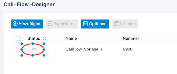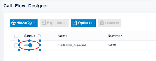 - Schalte den Schalter neben dem gewünschten Call-Flow ein.