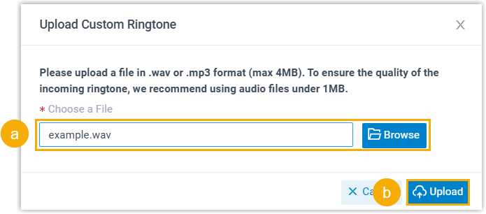 In diesem Abschnitt wird beschrieben, wie Sie einen benutzerdefinierten Klingelton hochladen, der als Linkus-eigener Klingelton für Mitglieder von IVR-Systemen, Warteschlangen und Anrufgruppen verwendet werden kann. Dadurch können diese Anrufe mit personalisierten Klingeltönen auf ihren Linkus-Clients empfangen und so die Anrufquelle schnell identifizieren.