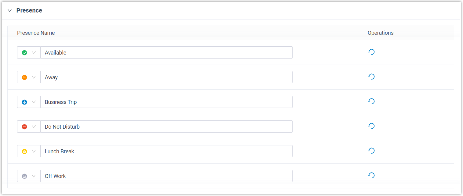 Passen Sie den Anwesenheitsstatus an, um die Verfügbarkeit der Nebenstellenbenutzer anzuzeigen. Die Anwesenheitseinstellung wird mit den folgenden Versionen auf allen Linkus UC-Clients synchronisiert: