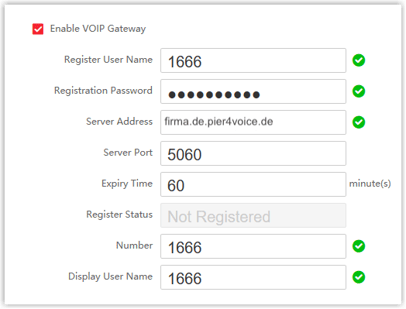 - Registrierung der Hikvision Indoor-Station bei Pier4Voice ( siehe oben )