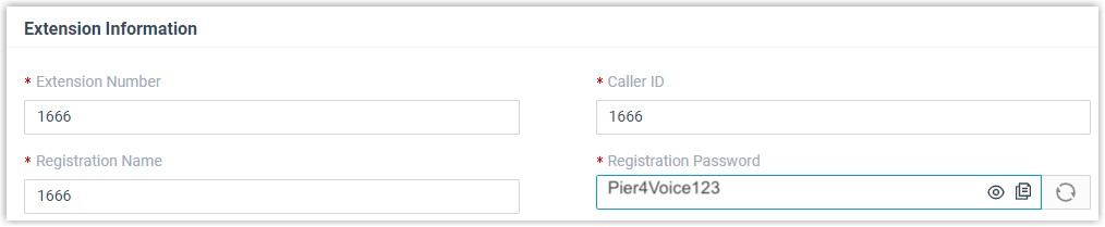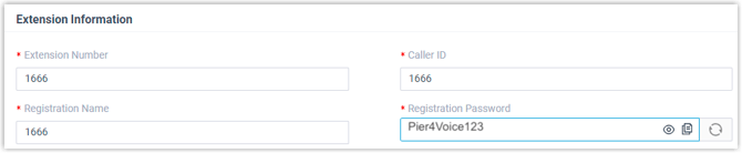 - Registrierungspasswort : Geben Sie das Registrierungspasswort der Erweiterung ein. In diesem Beispiel geben Sie Folgendes ein Pier4Voice123: