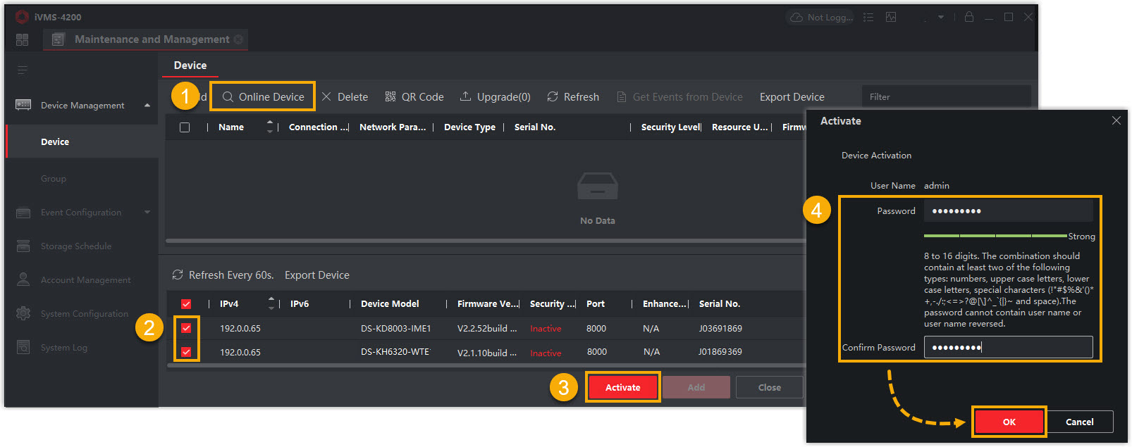 Schritt 2. Registrieren Sie sich und melden Sie sich beim Hikvision iVMS-4200 Client an.