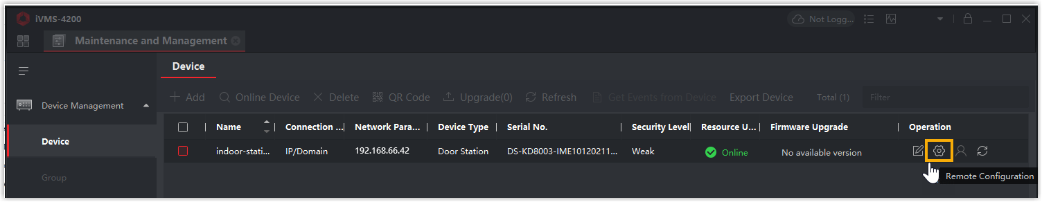 - Melden Sie sich beim iVMS-4200 Client an, gehen Sie zu Geräteverwaltung > Gerät und klicken Sie