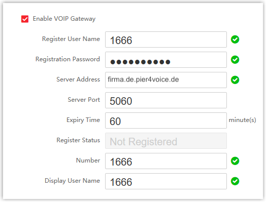 - Server-Port : Geben Sie den SIP-Registrierungsport der Pier4Voice ein . In diesem Beispiel geben Sie Folgendes ein 5060: