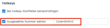 Wählen mit Tastenkombination (Hotkey)