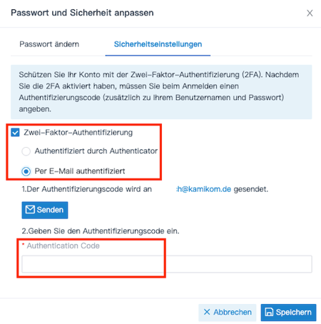 Zwei-Faktor-Authentifizierung per E-Mail konfigurieren