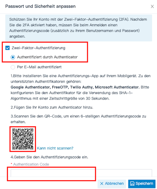 Zwei-Faktor-Authentifizierung per Authentifizierungs-App konfigurieren