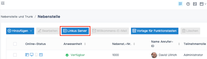 - Klicke oben in der Nebenstellenliste auf Linkus-Server.