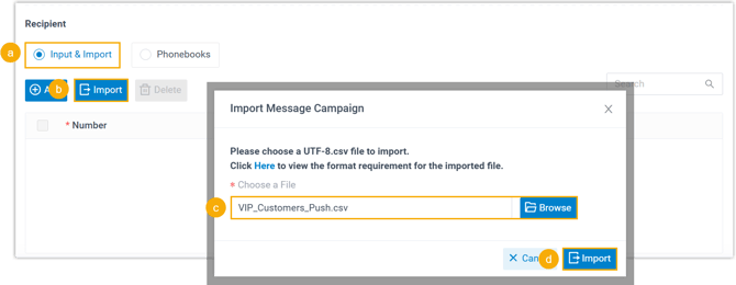 Import aus CSV-Datei Importieren Sie eine CSV-Datei, die die Telefonnummern der Kontakte enthält.