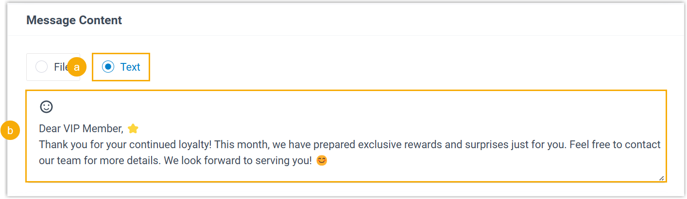 - Im Abschnitt „Nachrichteninhalt“ können Sie den Inhalt Ihrer Nachricht anpassen.