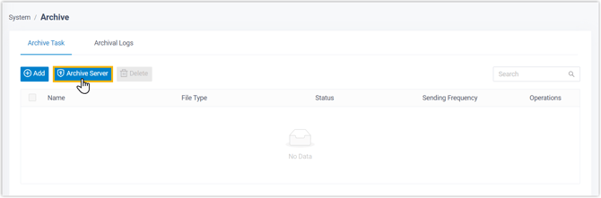 - Klicken Sie unter der Registerkarte „Archivierungsaufgabe“ auf „Archivserver“ .