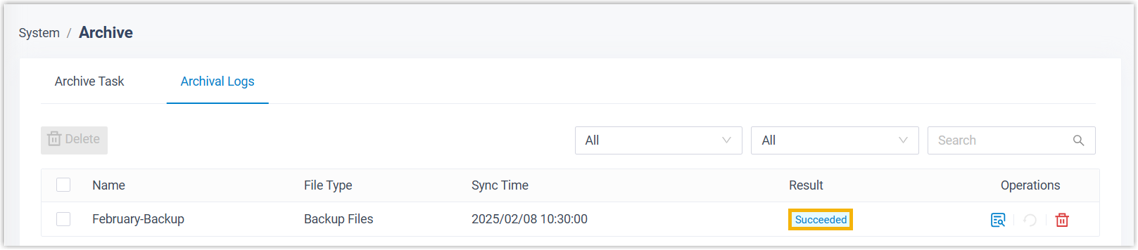 - Erstellen Sie eine einmalige oder wiederkehrende Archivierungsaufgabe.