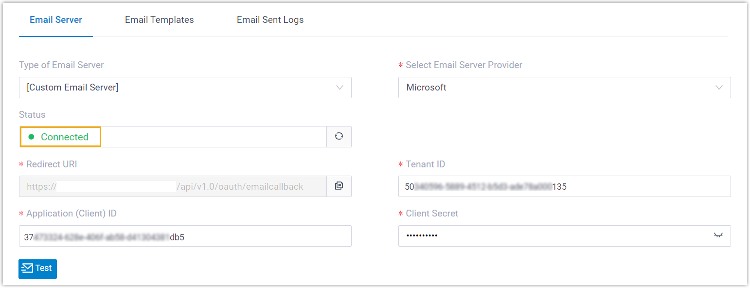 Dieses Thema beschreibt den SMTP-Server, die E-Mail-Vorlage, das tägliche E-Mail-Versandlimit und die Protokolle der gesendeten E-Mails.