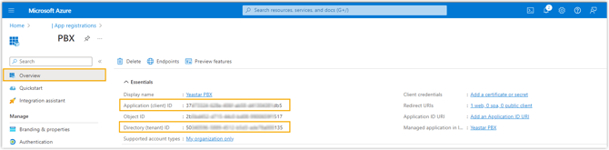 Notieren Sie sich die Anwendungs-ID (Client-ID) und die Verzeichnis-ID (Tenant-ID) der Anwendung, da Sie diese später in der Telefonanlage eintragen müssen.