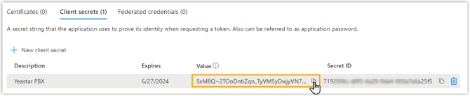 Notieren Sie sich den Wert des Client-Geheimnisses, da Sie diesen später in der Telefonanlage eintragen müssen.